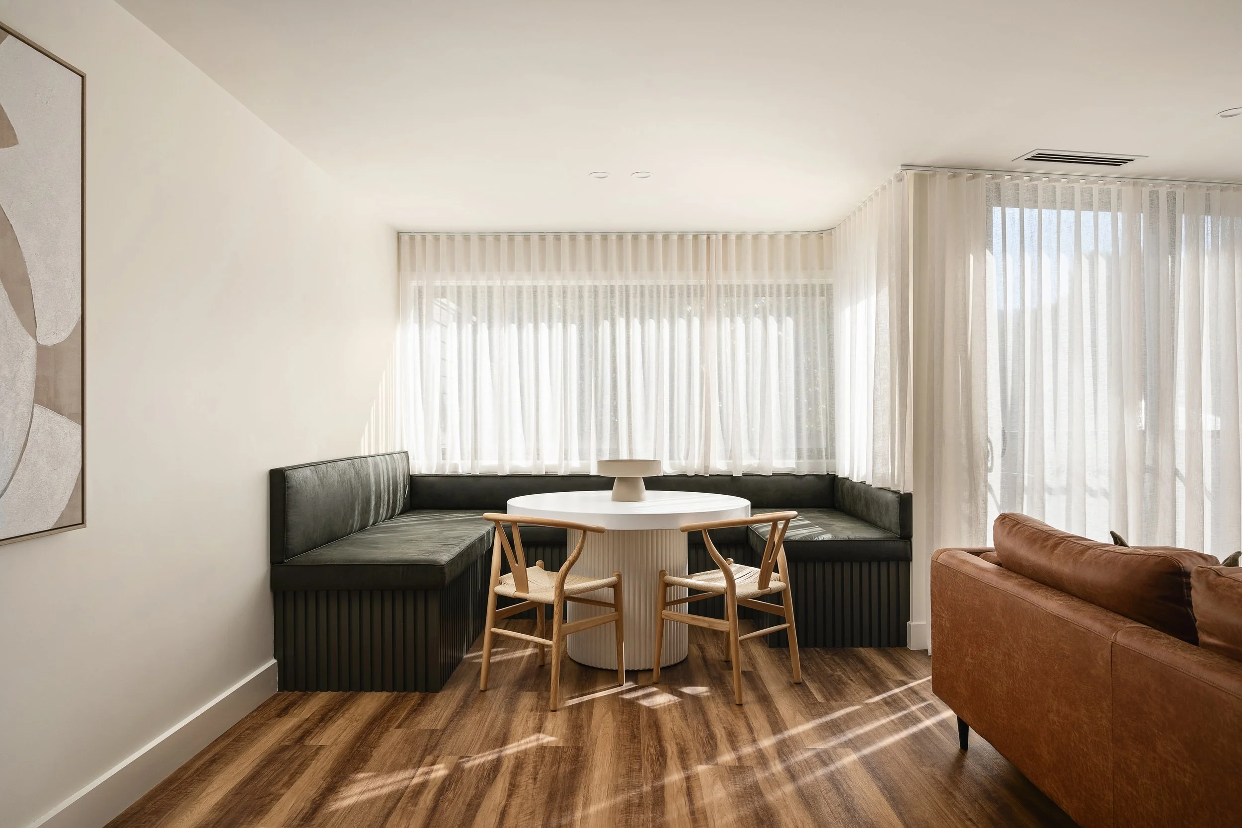 This stunning apartment combines modern design with high-end finishes, featuring an expansive open-plan living area that seamlessly connects to a private balcony perfectly positioned over the main street.