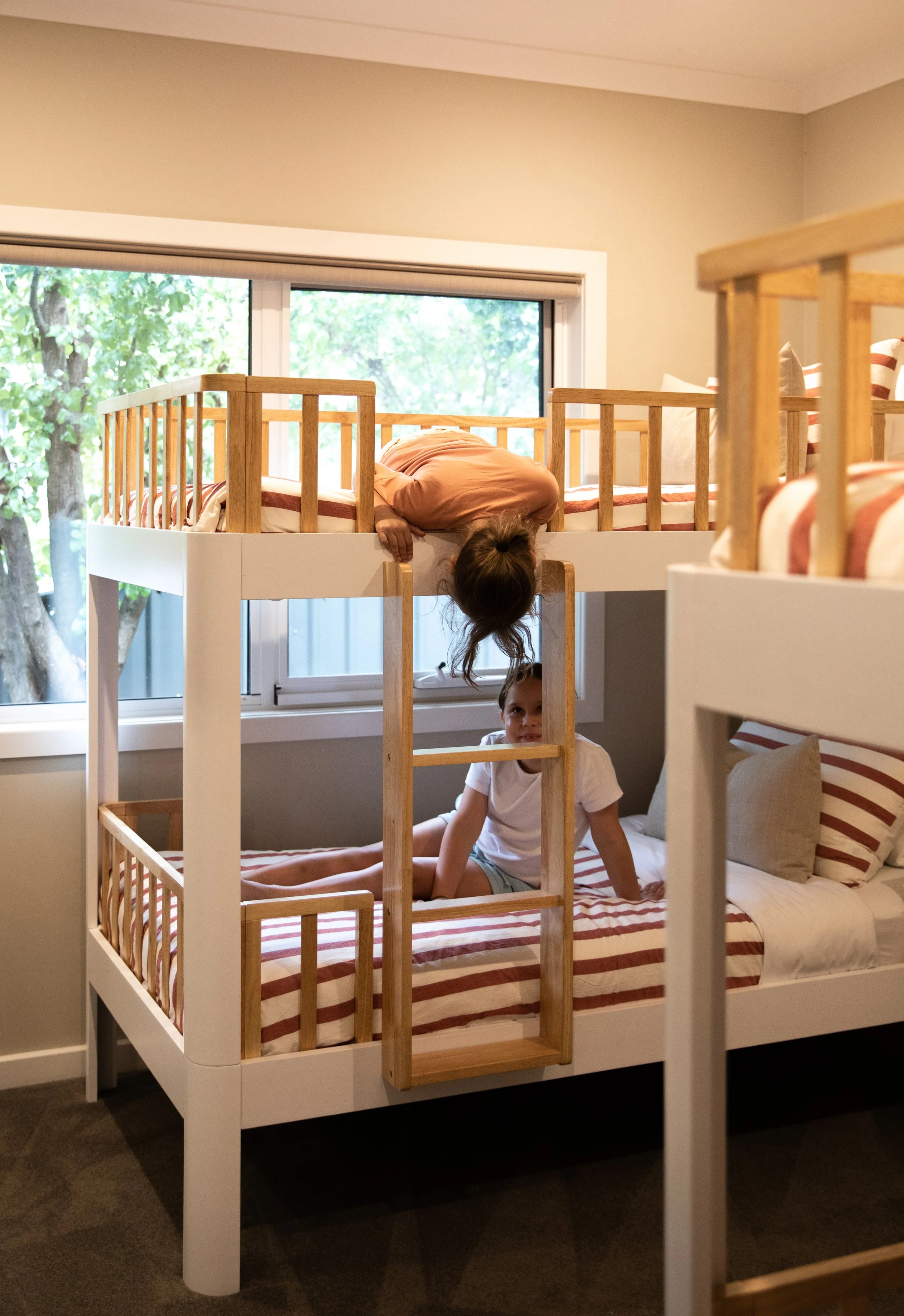 The master bedroom provides a quiet sanctuary from the rest of the house, with corner window overlooking the complex, private access to the front deck and a large contemporary ensuite inclusive of vanity, toilet and shower. Providing a plush king bed for extra comfort (note this bed can be converted in to two singles)