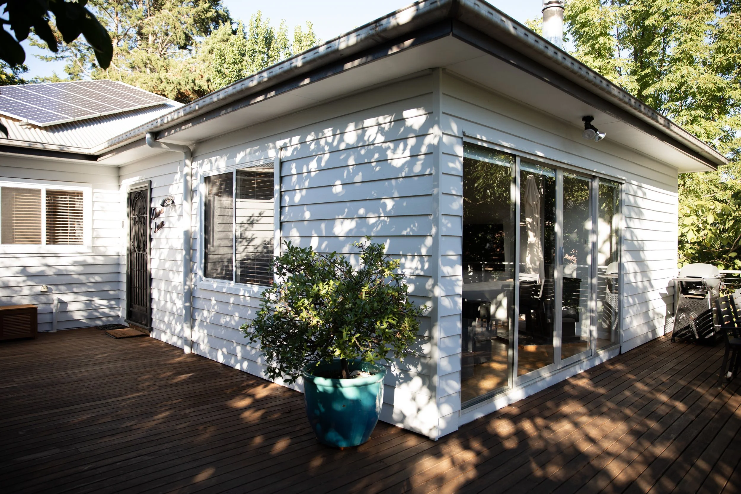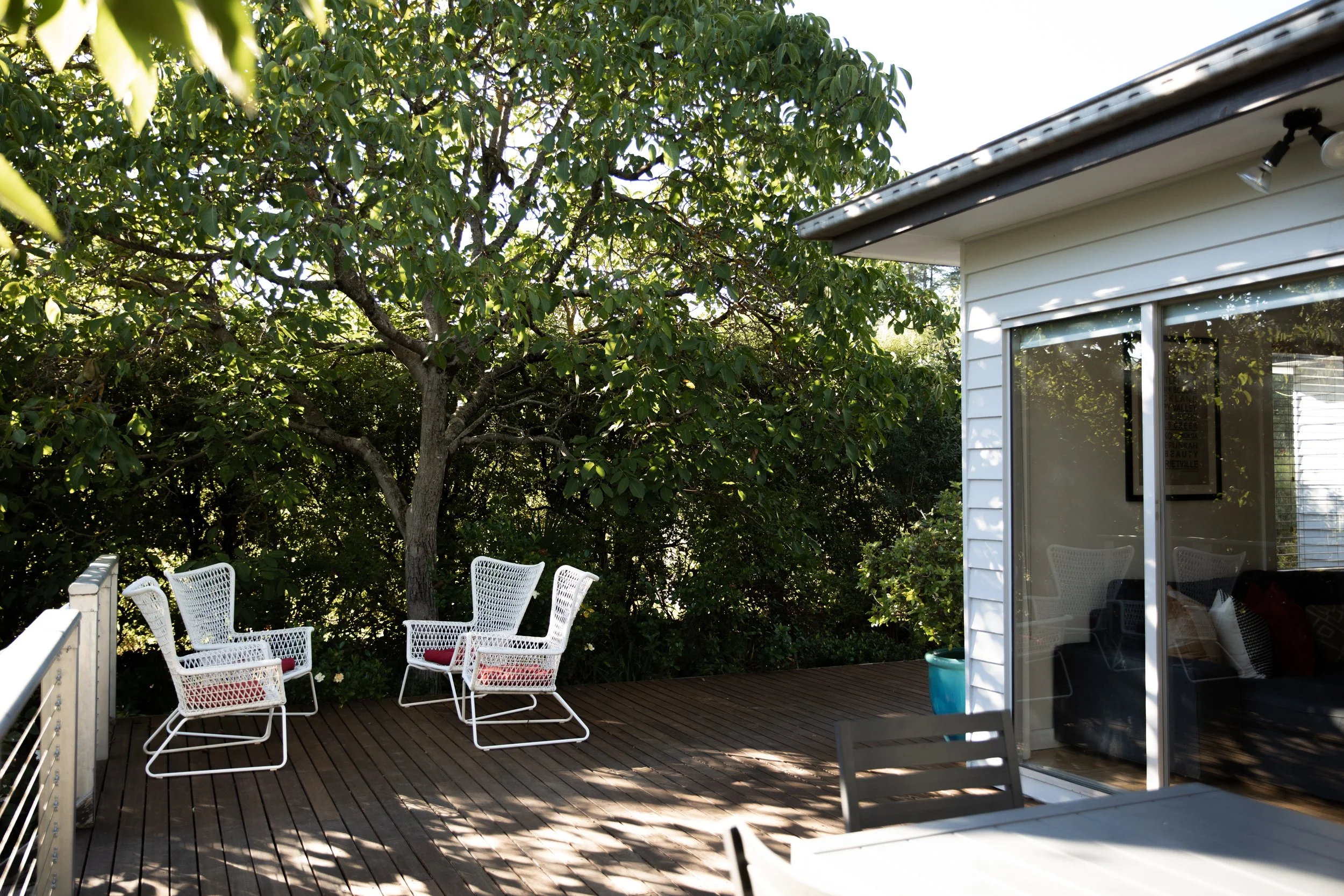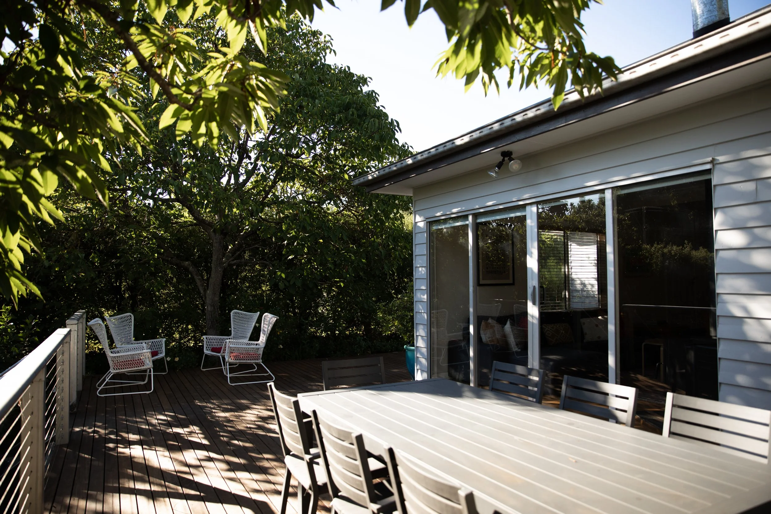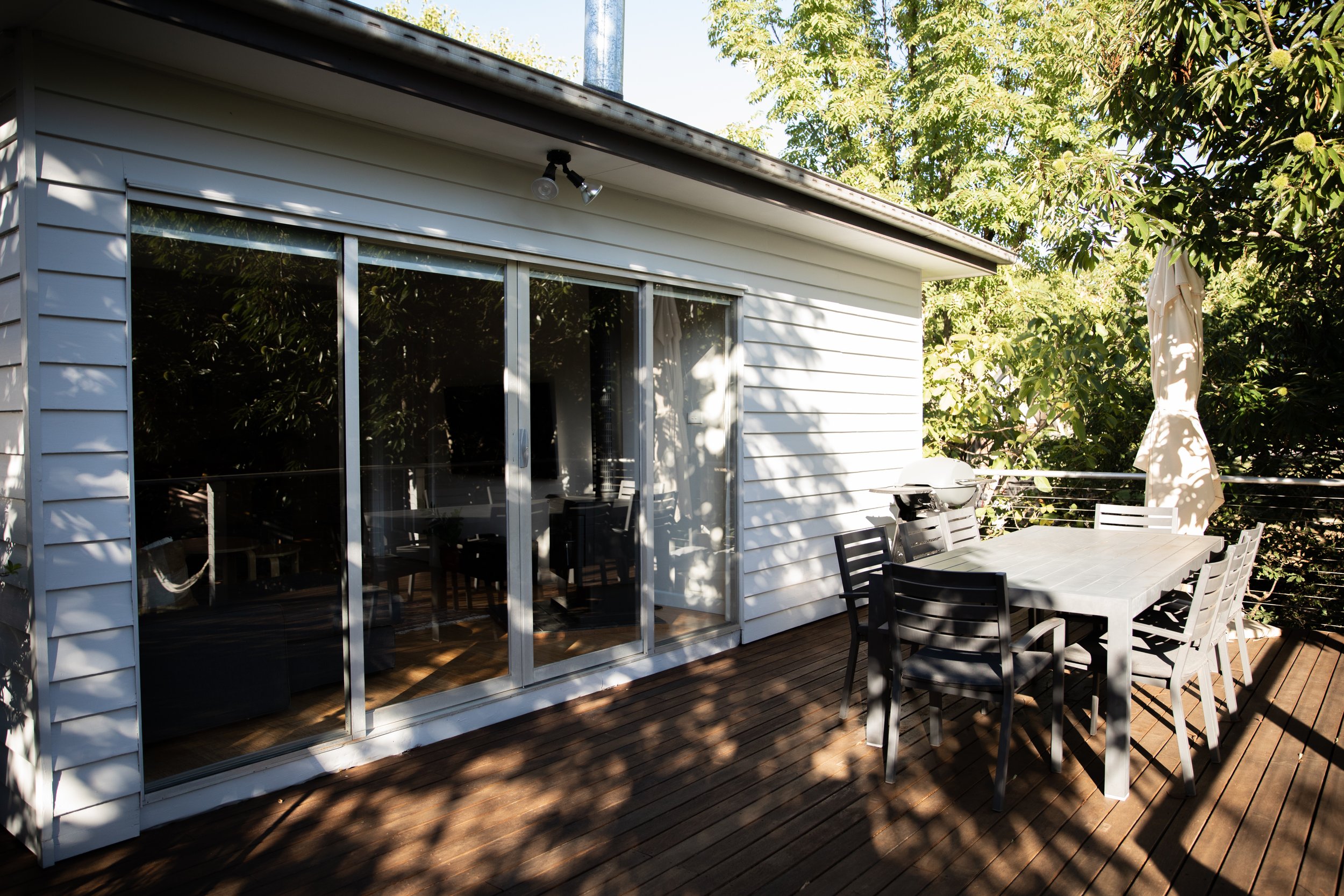 The lounge room provides floor-to-ceiling glass dissolving the barrier between inside and outside. The glass sliding doors open out onto the well-appointed deck that provides alfresco dining, BBQ facilities and the perfect spot to watch the kids roam free.