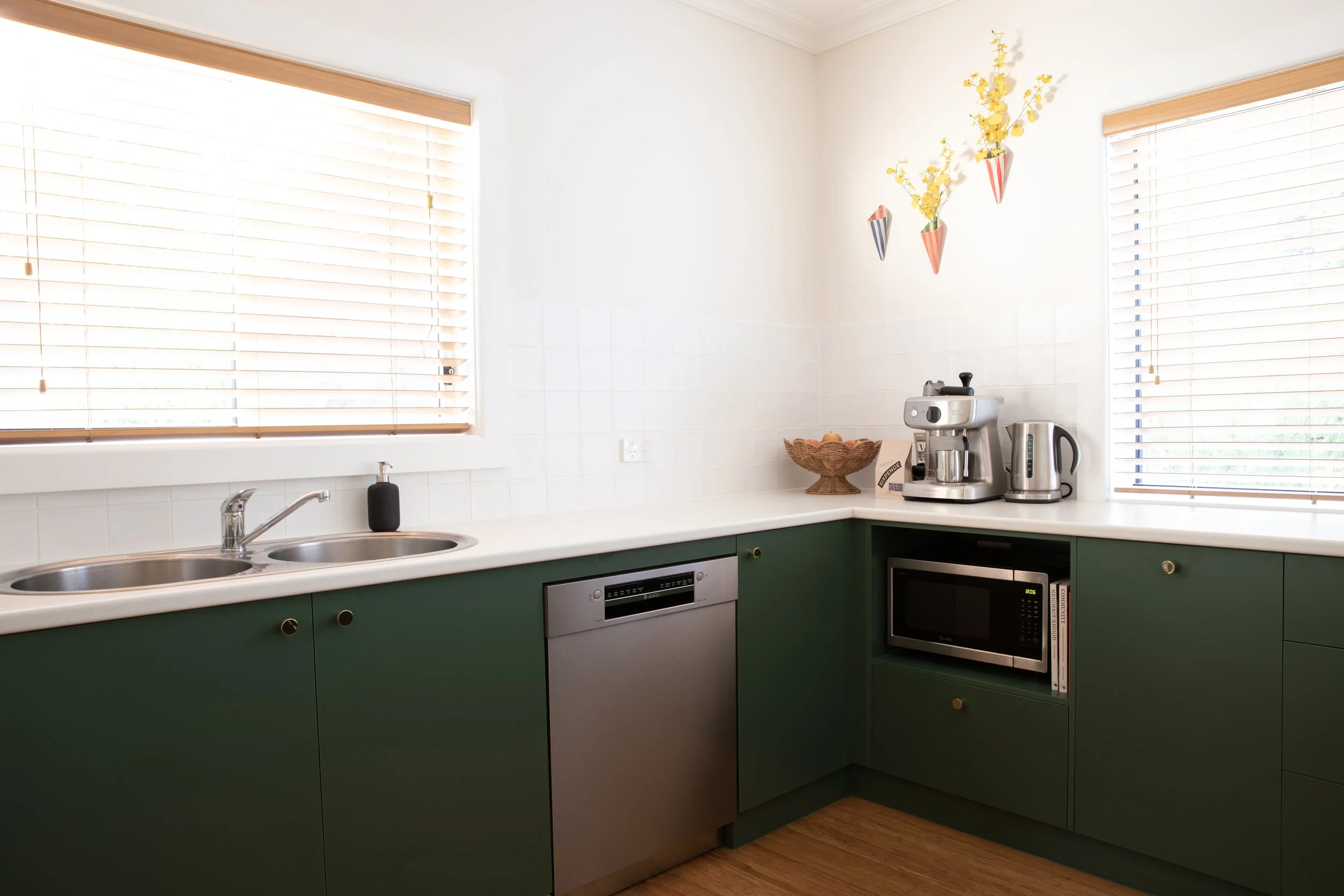 Central to the house is an extremely well-equipped kitchen featuring an 80cm induction cook top and electric oven, Sunbeam Barista espresso coffee machine, dishwasher, microwave, large fridge and freezer and all the necessities one would need during their time away.