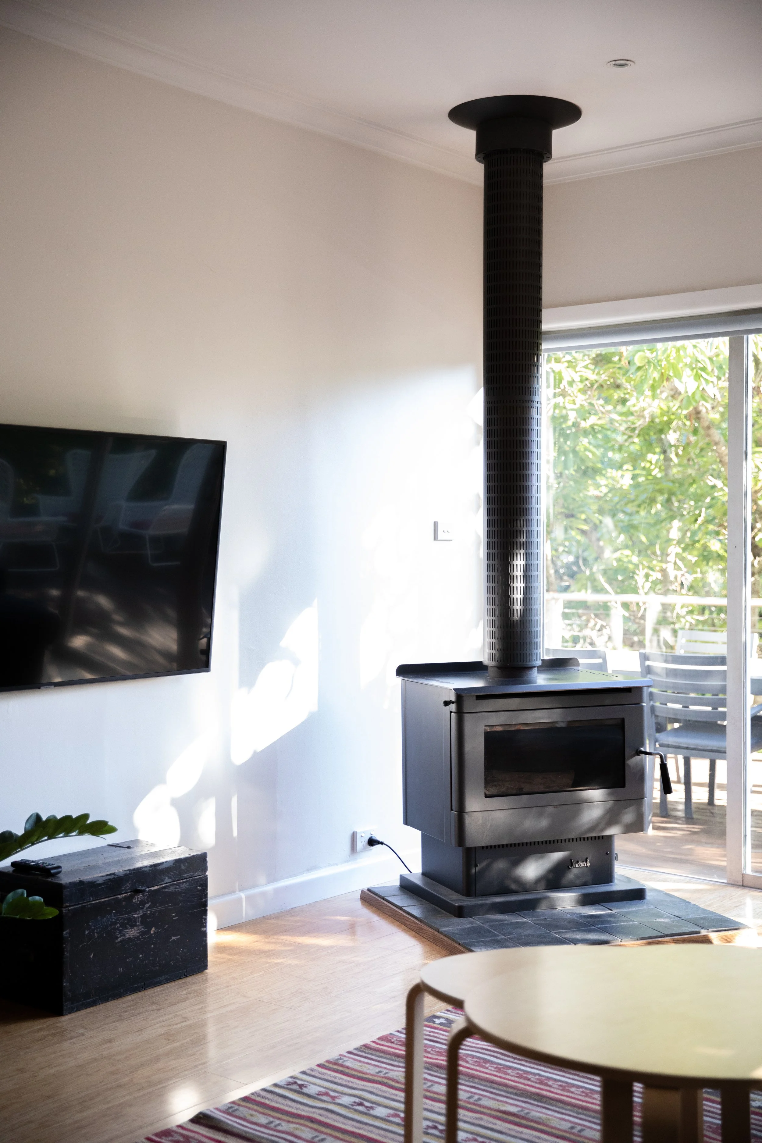 Quality heating and cooling including a wood-burning fireplace, reverse-cycle units, wall heaters, fans and electric blankets