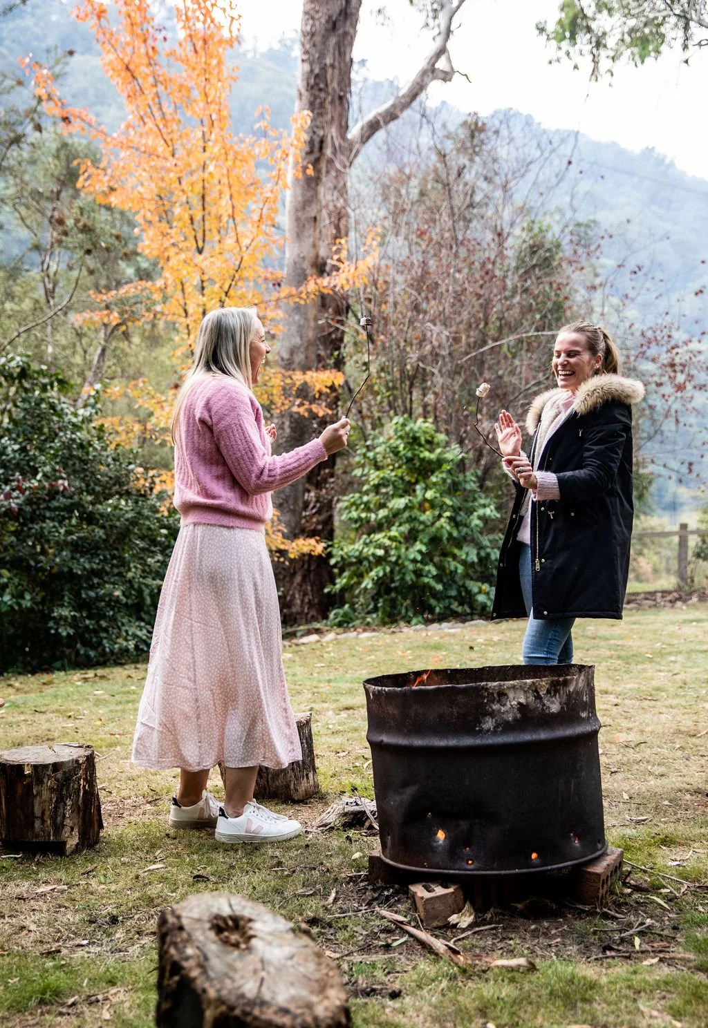Wander through the beautiful well-established gardens that take you down to our firepit, perfect for toasting marshmallows and enjoying time with friends and family when the season suits. A few more steps and you are at our back gate, opening onto Cherry Walk Walking Track that runs alongside Bright’s famous Oven’s River.