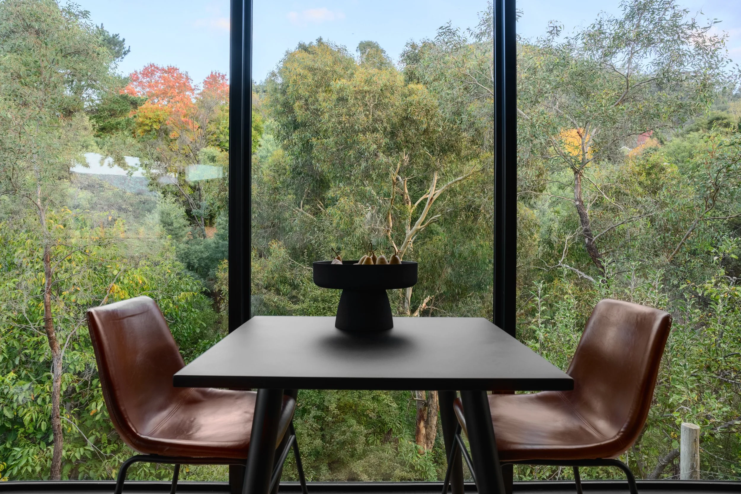 The main view looks straight up the Ovens Valley and up to Mt. Bogong. Stepping through the sliding door onto the balcony you can enjoy outdoor dining or time on our outdoor lounge seating, both of course have stunning views.